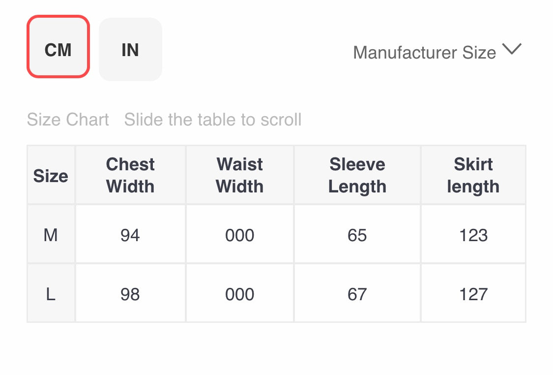 M Length 123cm, Bust:100cm, Sleeve length: 65cm