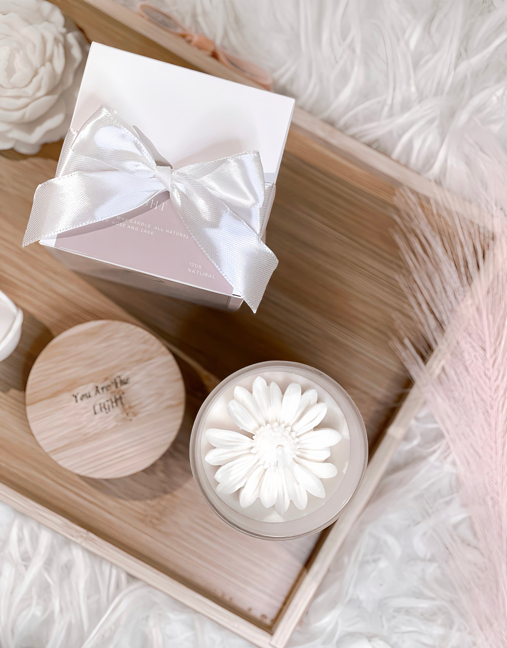 شمعة الأمنية برائحة اللاڤندر الكلاسيكية مصنوعة من شمع النخيل الصافي ذات الجودة العالية مع زيت اللاڤندر المخصص للشموع